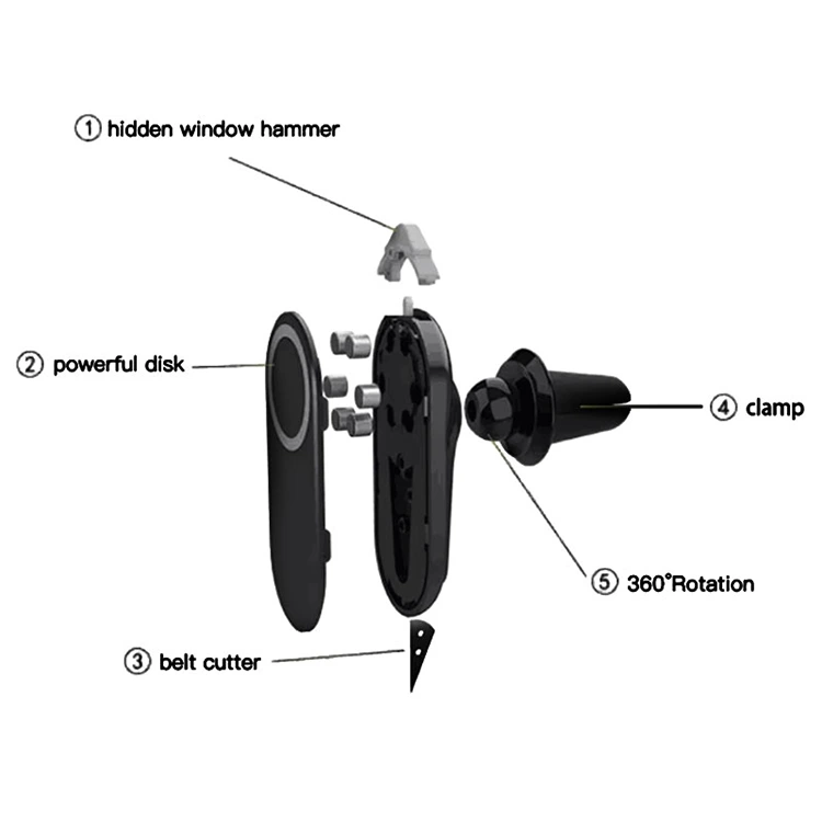 طراحی 3 در 1 این لوازم جانبی را در عرض چند ثانیه از یک نگهدارنده ساده به یک ابزار اضطراری تبدیل می کند. چکش پنجره مخفی محتاط و در عین حال موثر است و برش کمربند تیز و ضد زنگ از یک آلیاژ دقیق برای بریدن سریع کمربندهای ایمنی در مواقع اضطراری استفاده می کند.
