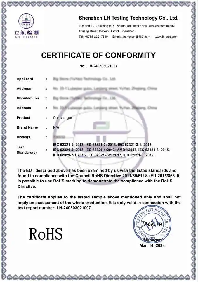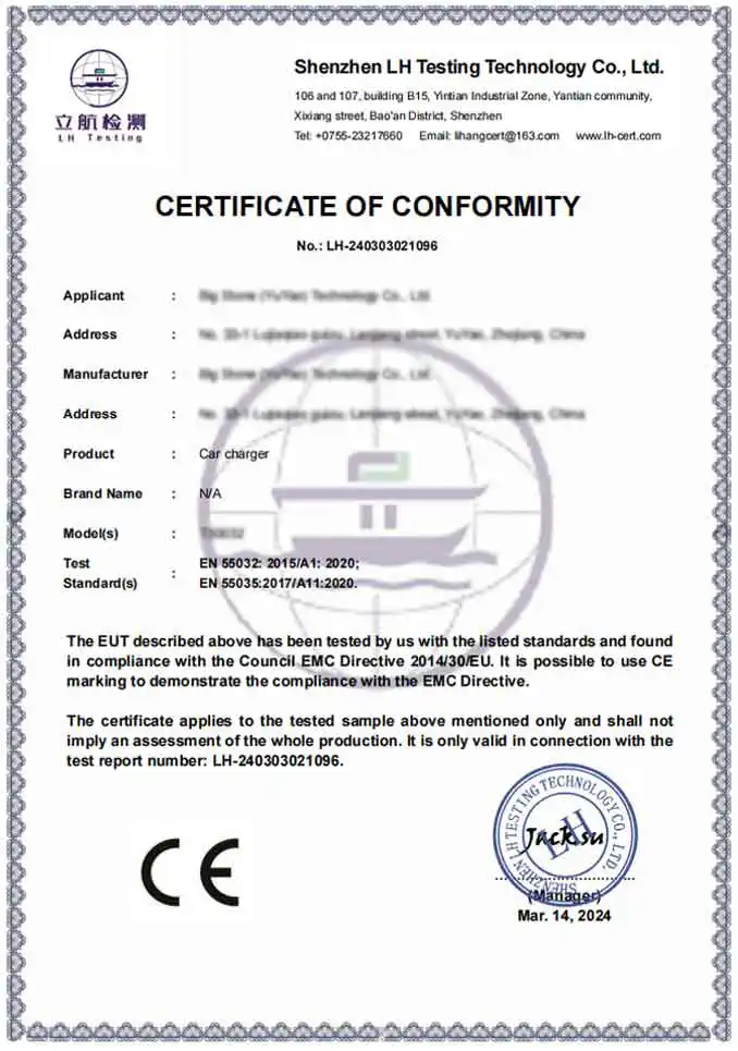 A: به عنوان یک کارخانه حرفه ای، محصولات ما به طور کامل با استانداردهای بین المللی ایمنی و محیط زیست مطابقت دارد. ما محصولات دارای گواهینامه CE و RoHS را ارائه می دهیم. علاوه بر این، تاسیسات تولید ما دارای گواهینامه BSCI و ISO است و اطمینان حاصل می کند که آداپتورهای شارژر خودرو ما استانداردهای فنی و اخلاقی دقیق مورد نیاز مارک های معتبر جهانی را برآورده می کنند.