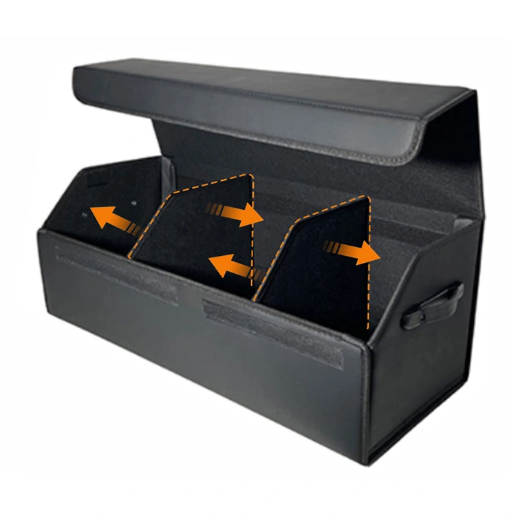 قابل جمع شدن: طراحی صرفه جویی در فضا در صورت عدم استفاده از بین می رود. زمانی که هیچ وسیله ای در جعبه نیست، یا باید وسایل بزرگ را در صندوق عقب قرار دهید، می توانید برای صرفه جویی در فضا، جعبه را تا کنید. محفظه های داخلی قابل تنظیم نیازهای مختلف ذخیره سازی را برآورده می کنند. دسته مجهز آن را متحرک می کند و می تواند وسایل را در هنگام کمپینگ یا خرید جابه جا کند.