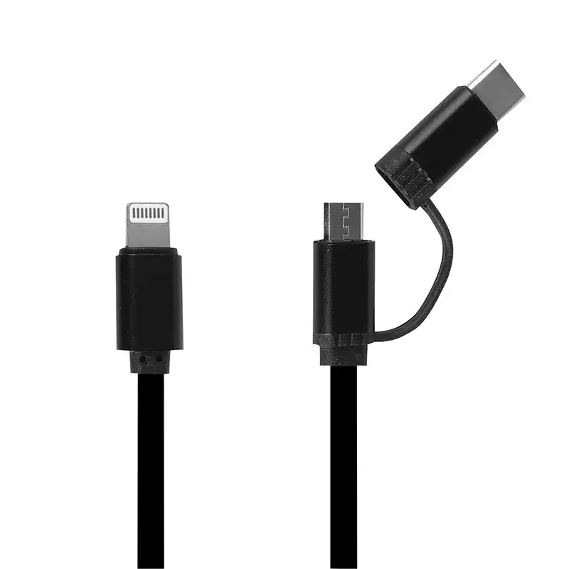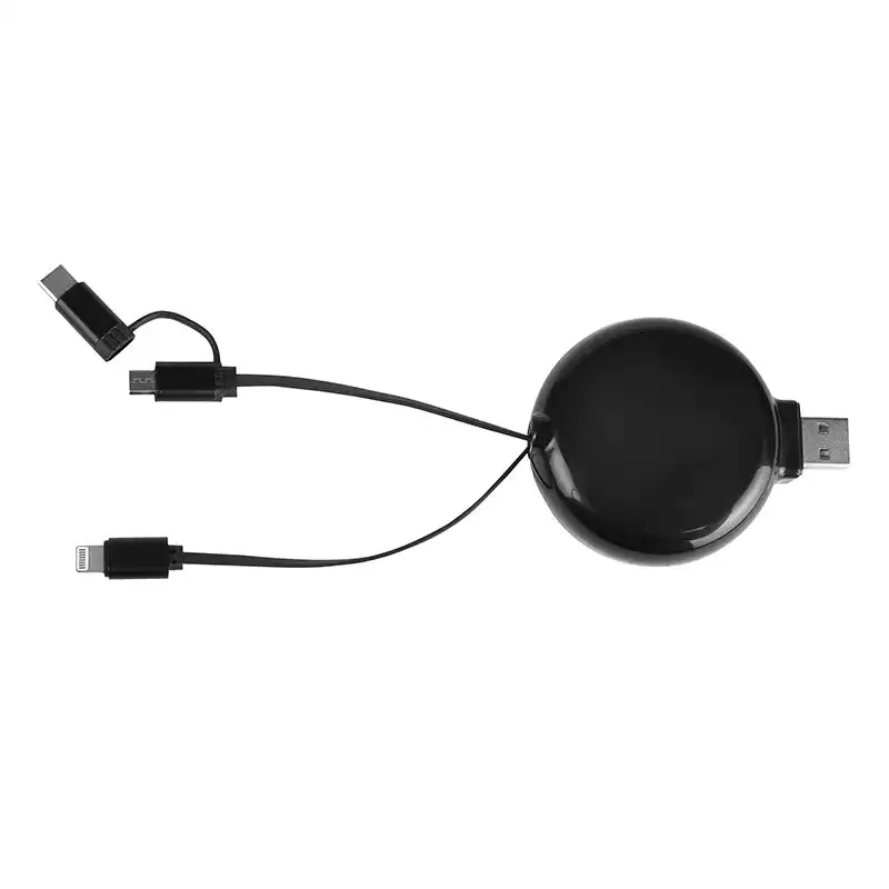 یک راه حل همه کاره 3 در 1 با کانکتورهای لایتنینگ، Micro-USB و USB-C یکپارچه روی یک حلقه جمع شونده برای حداکثر سازگاری.